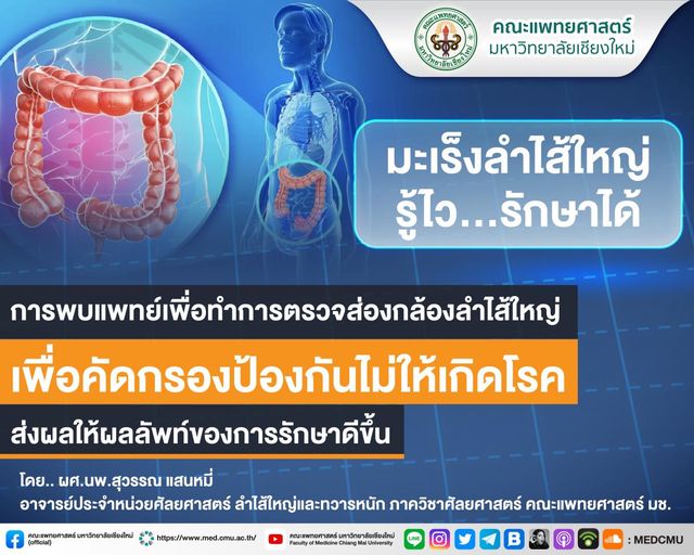 ขอขอบคุณข้อมูลจาก:ผศ.นพ.สุวรรณ แสนหมี่ อาจารย์ประจำหน่วยศัลยศาสตร์ ลำไส้ใหญ่และทวารหนัก ภาควิชาศัลยศาสตร์ คณะแพทยศาสตร์ มช.