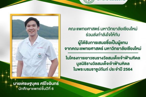 29 กรกฎาคม 2021 พิธีมอบเสื้อกาวน์นักศึกษาแพทย์ชั้นปีที่ 4 คณะแพทยศาสตร์ มช. ประจำปีการศึกษา 2564 อ่านเพิ่มเติม