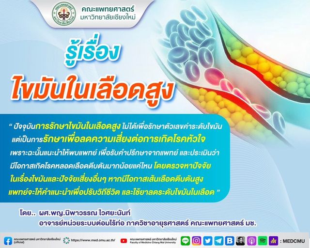 ปัจจุบันการรักษาไขมันในเลือดสูง ไม่ได้เพื่อรักษาตัวเลขค่าระดับไขมัน แต่เป็นการรักษาเพื่อลดความเสี่ยงต่อการเกิดโรคหัวใจ เพราะฉะนั้น แนะนำให้พบแพทย์ เพื่อรับคำปรึกษาจากแพทย์และประเมินว่ามีโอกาสเกิดโรคหลอดเลือดตีบตันมากน้อยแค่ไหน โดยตรวจหาปัจจัยในเรื่องไขมัน และปัจจัยเสี่ยงอื่นๆ หากมีโอกาสเส้นเลือดตีบตันสูง แพทย์จะให้คำแนะนำเพื่อปรับวิถีชีวิต และใช้ยาลดระดับไขมันในเลือด