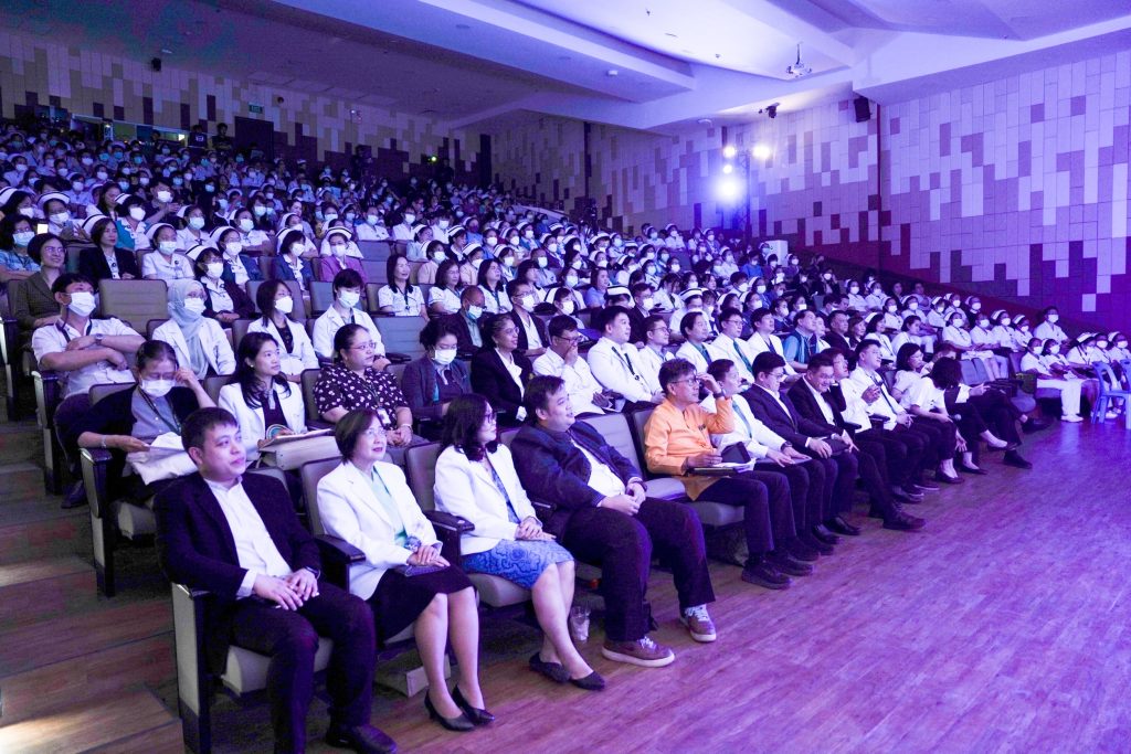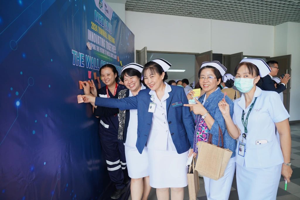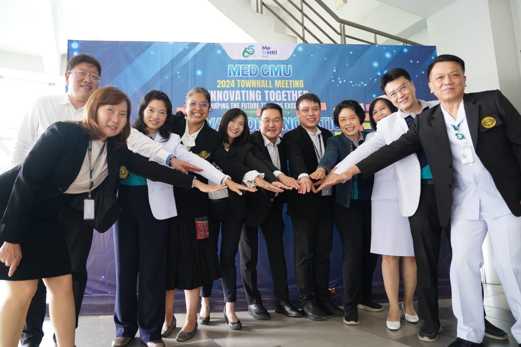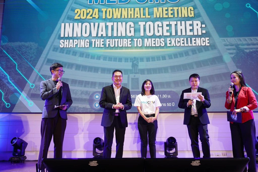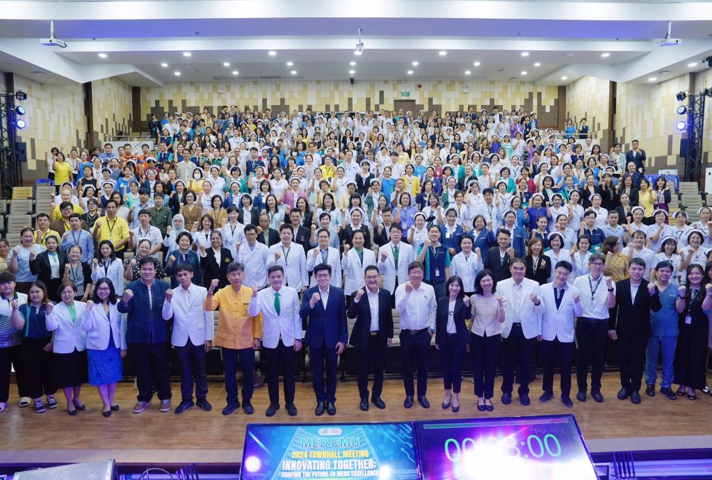 ศ.(เชี่ยวชาญพิเศษ) นพ.บรรณกิจ โลจนาภิวัฒน์ คณบดีคณะแพทยศาสตร์ มช. เป็นประธานในพิธีเปิด โครงการ MEDCMU Townhall: Innovating Together – Shaping the Future to MEDS Excellence พร้อมบรรยายพิเศษ เรื่อง MEDCMU: VMV and Strategic Objectives update, ความภูมิใจในความสำเร็จของเรา MEDCMU Celebrating Milestones โดยมีบุคลากรเข้าร่วม onsite และ online จำนวนกว่า 700 คน โดยมี รศ.นพ.นเรนทร์ โชติรสนิรมิต ผู้อำนวยการ โรงพยาบาลมหาราชนครเชียงใหม่ บรรยายเรื่อง นโยบายด้านการบริการสุขภาพโรงพยาบาลมหาราชฯ พร้อมด้วย ผศ.นพ.สารนาถ ออรพินท์ รองคณบดีคณะแพทยศาสตร์ มช. บรรยายและประกาศนโยบาย Carbon neutral policy, ผศ.นพ.กฤษณ์ ขวัญเงิน รองคณบดีคณะแพทยศาสตร์ มช. บรรยายเรื่อง Monitoring System (OC dashboard), ผศ.นพ.เศรษฐพงศ์ บุญศรี รองคณบดีคณะแพทยศาสตร์ มช. บรรยายเรื่อง KM platform และ รศ.พญ.สุรินทร์พร ลิขิตเสถียร รองคณบดีคณะแพทยศาสตร์ มช. บรรยายเรื่อง Empowering our people ในงานมีกิจกรรม Innovation Wall ให้ผู้เข้าร่วมเขียนไอเดืยนวัตกรรม สิ่งที่อยากให้คณะฯ ทำเพื่อมุ่งสู่นวัตกรรมของหน่วยงานเพื่อมุ่งสู่ MEDS Excellence ในโอกาสเดียวกัน ศ.(เชี่ยวชาญพิเศษ) นพ.บรรณกิจ โลจนาภิวัฒน์ คณบดีคณะแพทยศาสตร์ มช. แสดงความขอบคุณบุคลากร และหน่วยงานที่สนับสนุนการพัฒนาคุณภาพคณะแพทยศาสตร์ มช. ในวันที่ 19 สิงหาคม 2567 ณ ห้องประชุม ชั้น 2 อาคารเรียนและปฏิบัติการ 50 ปี คณะแพทยศาสตร์ มช.