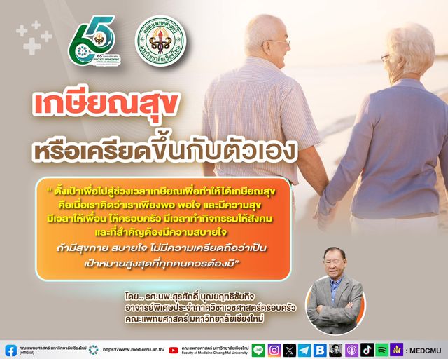ขอบคุณข้อมูลจาก : รศ.นพ.สุรศักดิ์ บุณยฤทธิชัยกิจ อาจารย์พิเศษประจำภาควิชาเวชศาสตร์ครอบครัว คณะแพทยศาสตร์ มหาวิทยาลัยเชียงใหม่