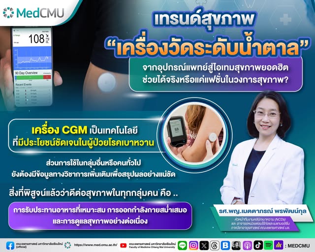 • ไม่มีหลักฐานยืนยันชัดเจนถึงประโยชน์ระยะยาวของ CGM ในคนที่ไม่เป็นเบาหวาน
